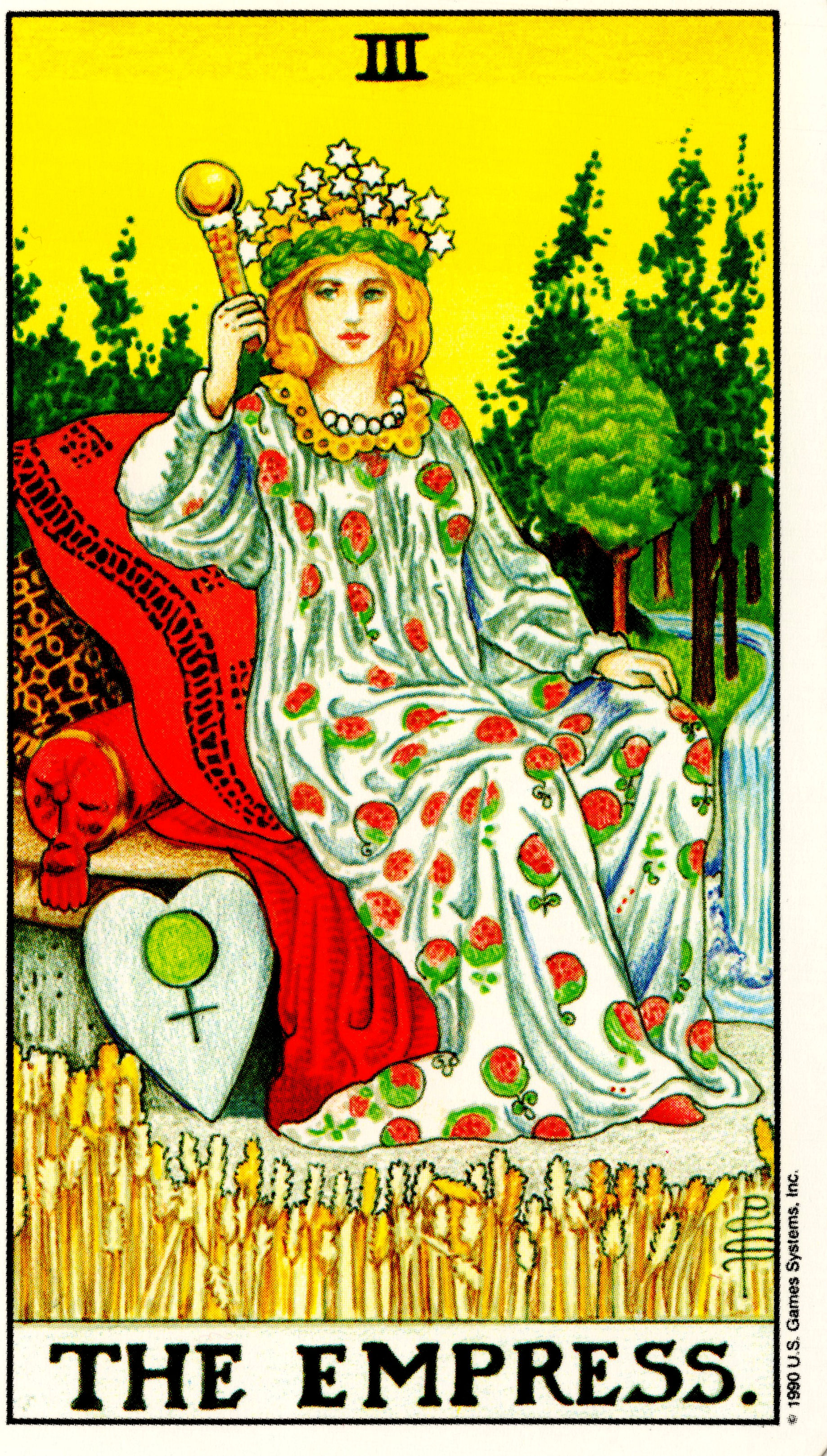 사랑과 아름다움 그리고 결실을 모두 손에 쥔 여성을 뜻합니다. 임부복을 입고 있기에 모성이라는 키워드도 함께 가지고 있습니다. 물질적인 것과 정신적인 번영, 실용적, 안정감, 남들의 주목을 받음, 결혼, 임신, 삶에 대한 열정적 자세, 사치스러움, 허영심 게으르고 몸이 무거운, 자식에 대한 집착, 과보호, 낭비, 물질적 추구, 질투(다른 사람이 주목받는 걸 싫어함), 화려함, 안락함의 추구 등의 키워드가 있습니다.